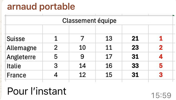 La bonne nouvelle, c’est que nous sommes pour le moment, troisième par équipe.
