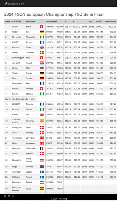 L’équipe fait face dans ces demi-finales : Arnaud a repris une place avec un magnifique vol F, Rémi garde sa 12éme place et Thomas remonte de deux places avec un joli vol, il termine 15éme à une place de la finale.
