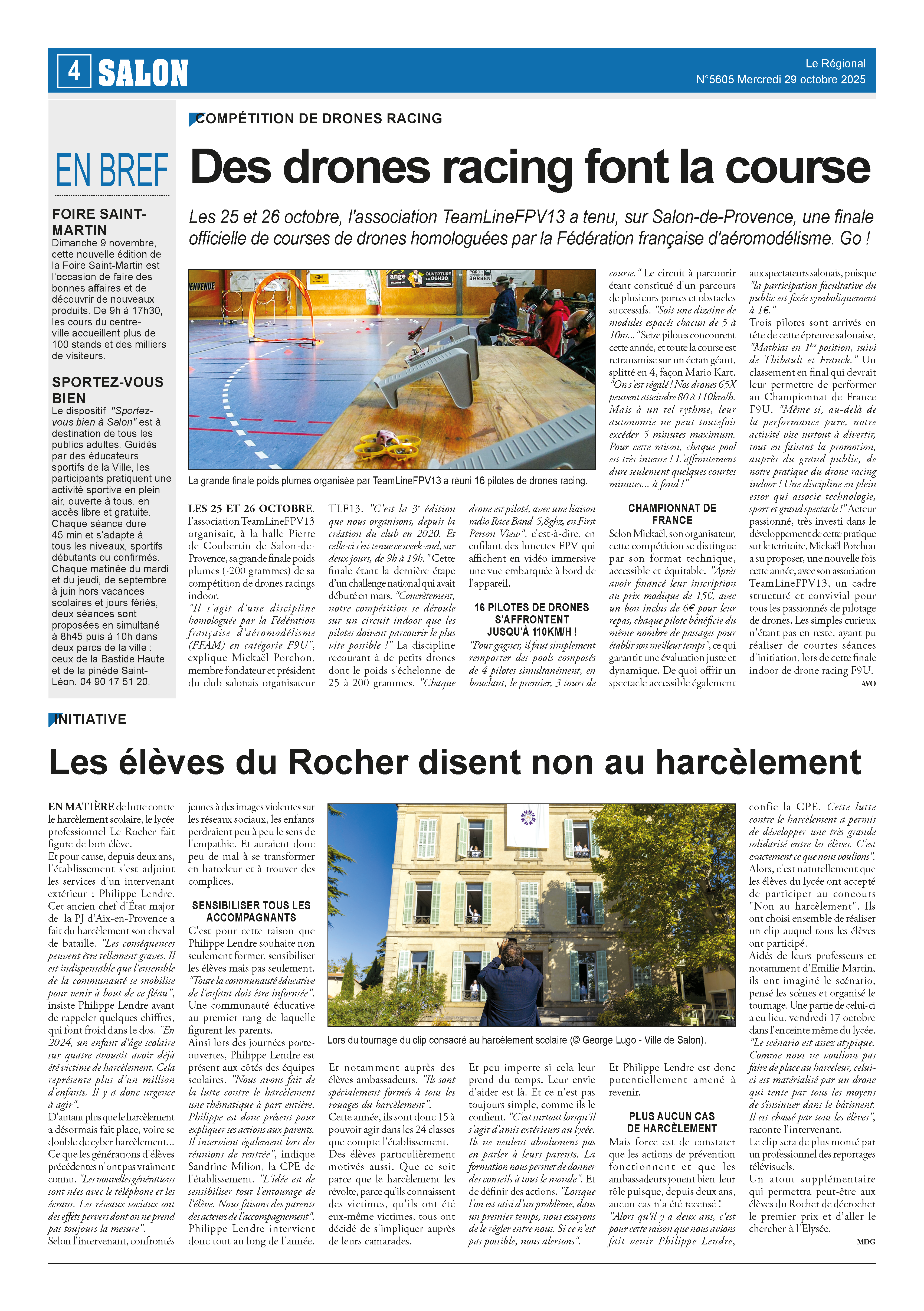 Les 25 et 26 octobre, l'association TeamLineFPV13 a tenu, sur Salon-en-Provence, une finale officielle de courses de drones homologuées par la Fédération française d'aéromodélisme. Go !