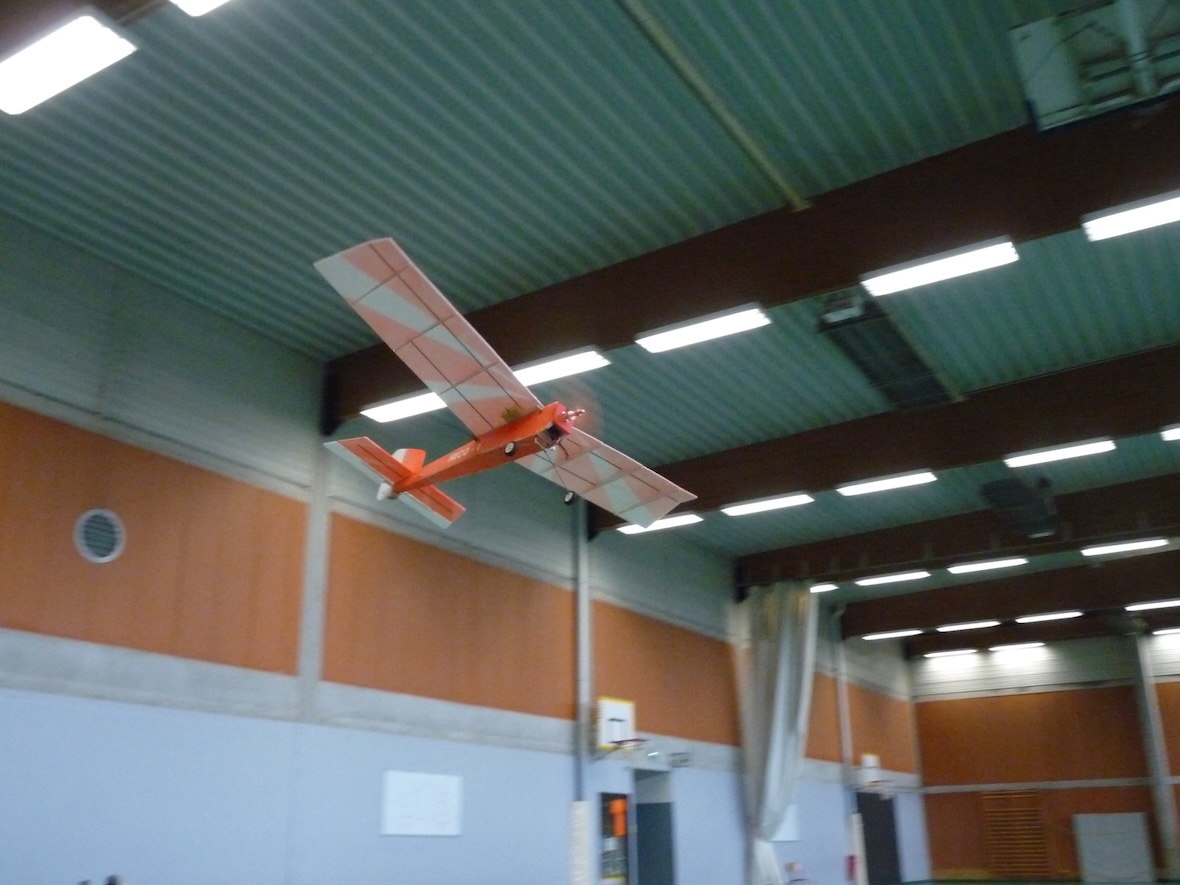 Pour info, le vol indoor consiste à faire évoluer de tous petits modèles réduits volants électriques dans un cadre très restreint, contrairement au vol d’extérieur que nous pratiquons normalement.