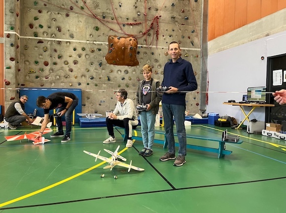 Ce dimanche donc, certains ont ressorti de vieux modèles de « p’tits » avions et hélicoptères tandis que d’autres ont assemblé des avions neufs. La Fédération Française d’Aéromodélisme (FFAM – 20.000 membres) nous a subventionné pour l’achat d’un avion-école indoor car nous avons le label École de Formation en Aéromodélisme (EFAM).