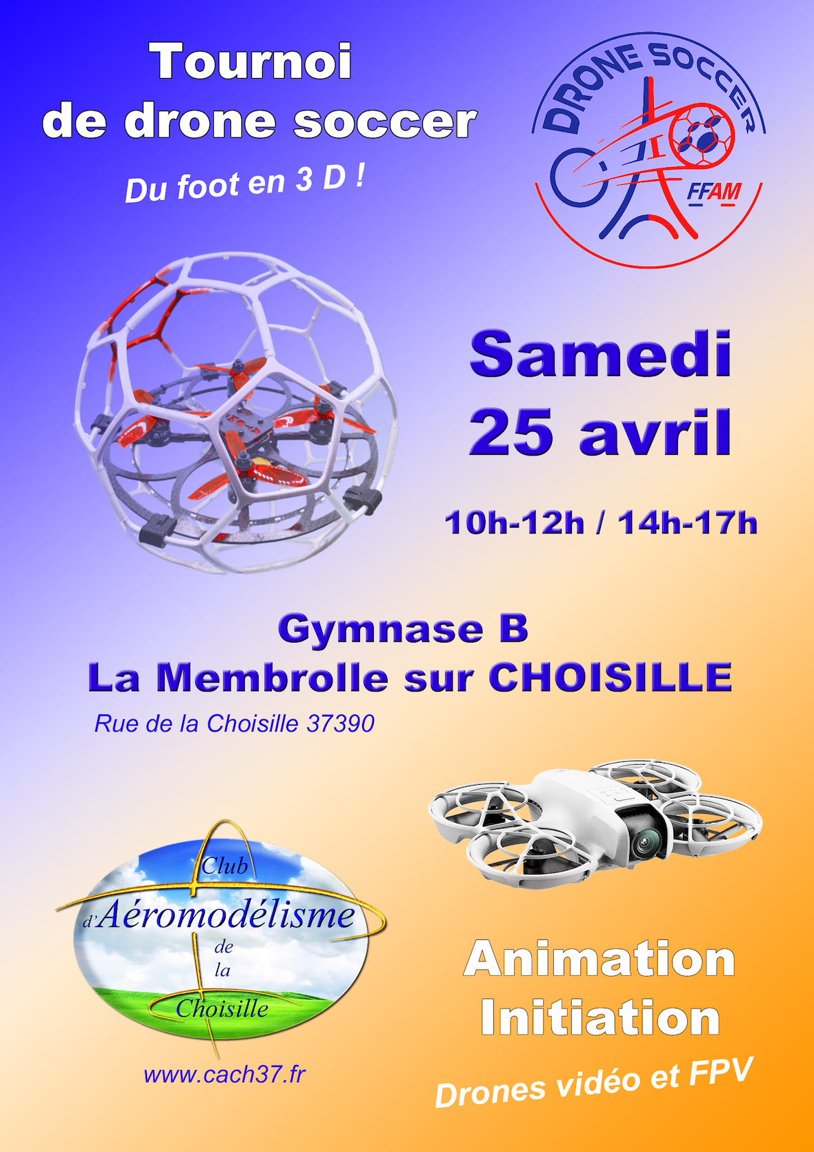 Le CACH37 organise le samedi 25 avril un tournoi de drones soccer, doublé d’une journée portes ouvertes avec découverte du pilotage de drones vidéo et démonstrations de FPV.