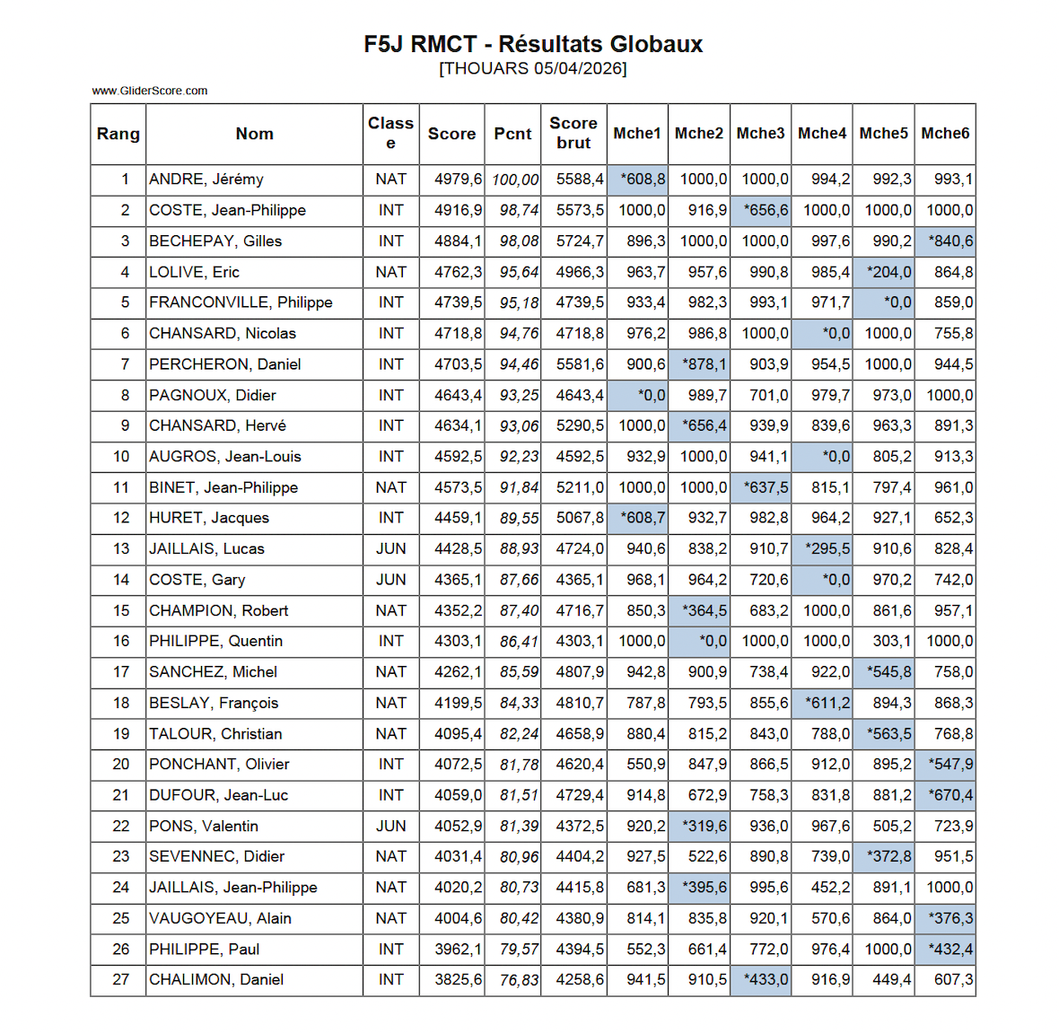 Ce dimanche 5 avril s’est déroulé le concours de F5J organisé par le Radio Modèle Club Thouarsais. Toujours autant de succès pour notre plateforme : 38 inscrits (dont certains venant de Bretagne, Bourgogne, Auvergne) ; 3 membres de l’équipe de France 2026 sénior (Nicolas CHANSARD, Frédéric FILLIOL, Quentin PHILIPPE ; 5 juniors (la relève est là) dont 2 de l’équipe de France 2026 (Gary COSTE et Valentin PONS).