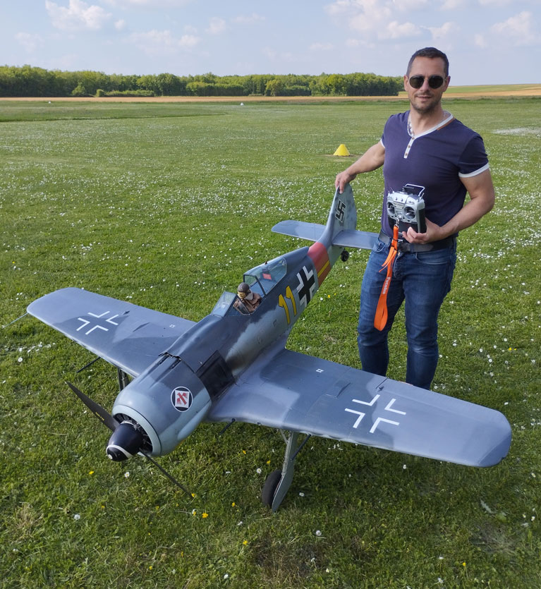 En 2014, le Championnat du monde se déroulait à Marmande en France. Après un entrainement intensif et plus de 6 mois passés dans l’atelier pour apporter tout un tas de modifications à mon FOCKE-WULF190A8, j’ai obtenu la 6e place en individuel et j’ai été sacré Champion du monde par équipe.