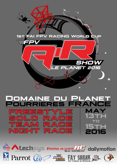 Du 13 au 15 mai prochain aura lieu au Domaine du Planet à Pourrières (Var) la FPV Air Show Le Planet 2016, première compétition de la coupe du monde (World Cup) de FPV Racing mise en place par la Fédération Aéronautique Internationale (FAI).