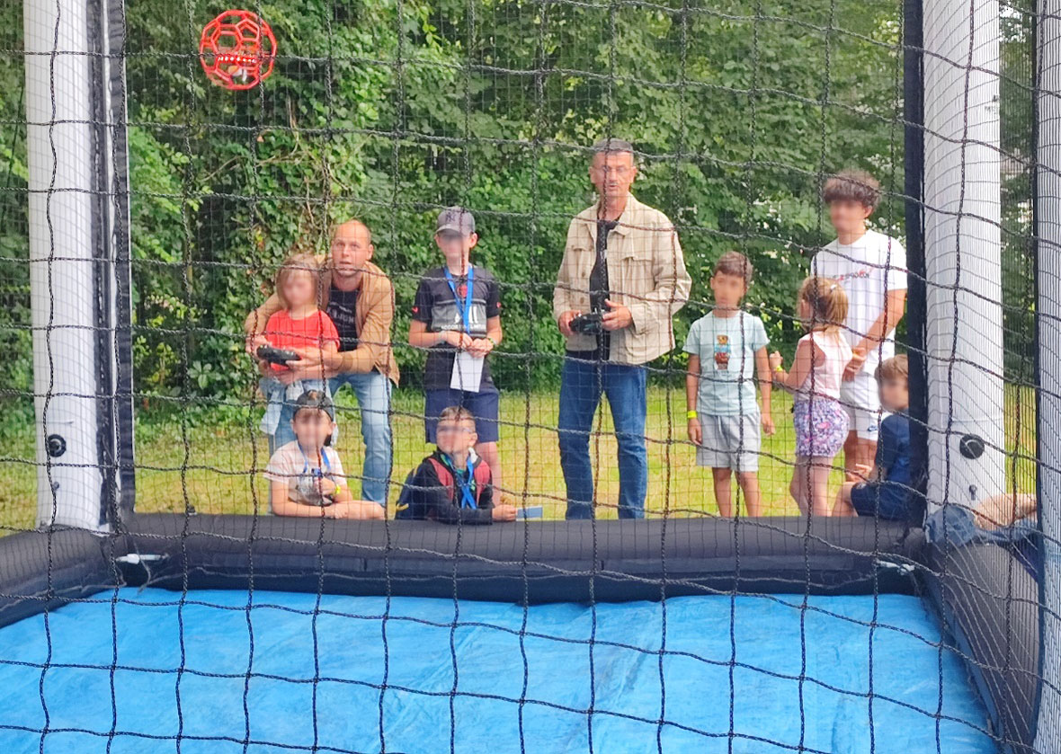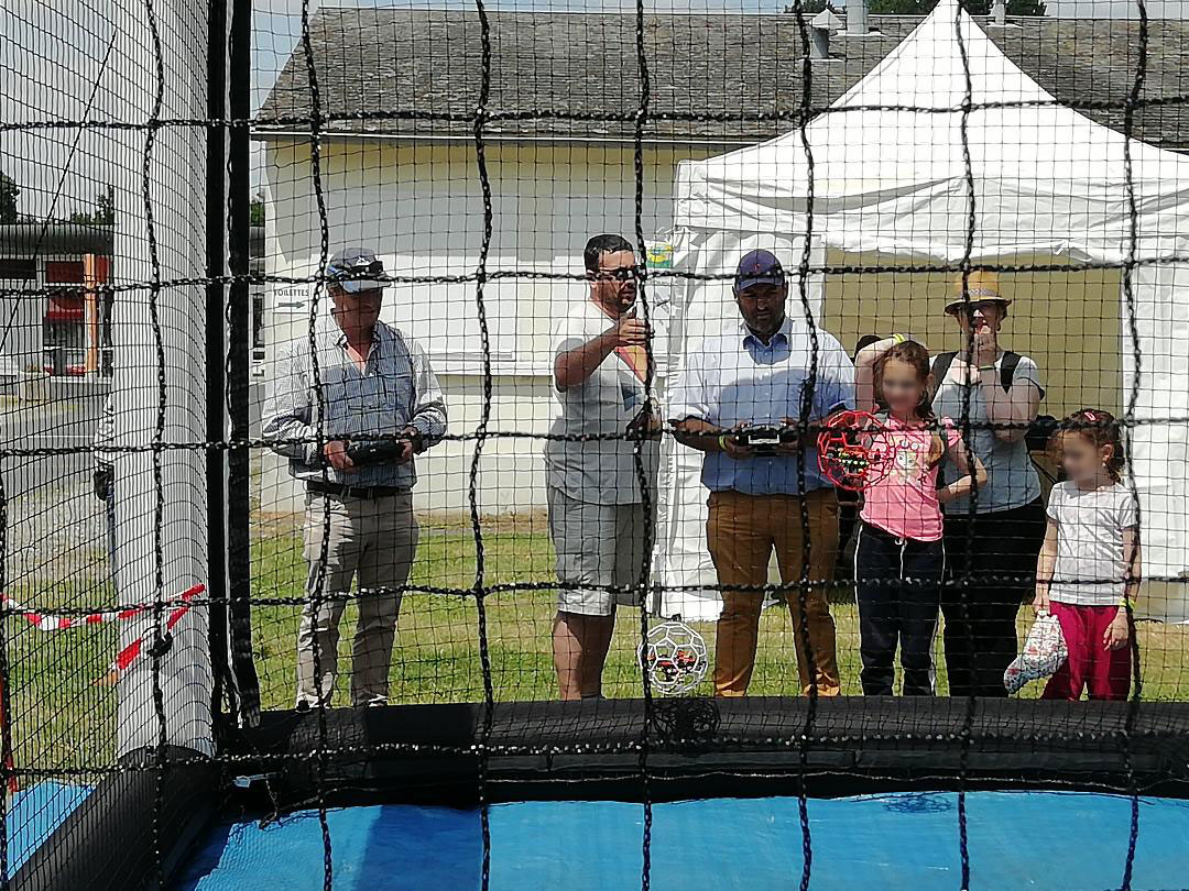 Les simulateurs ont eu également leurs succès auprès des moins de 10 ans. Les plus de 10 ans eux, devaient faire un peu de simu avant de se confronter à la cage ! Les filles étaient globalement plus habiles que les garçons. Contrairement à une idée reçue, les habitués de la console de jeux étaient les plus en difficultés ! Trop brusque avec les manches, le drone se ruaient dans les filets… Il fallait de la précision et de la finesse pour maitriser cette boule infernale !