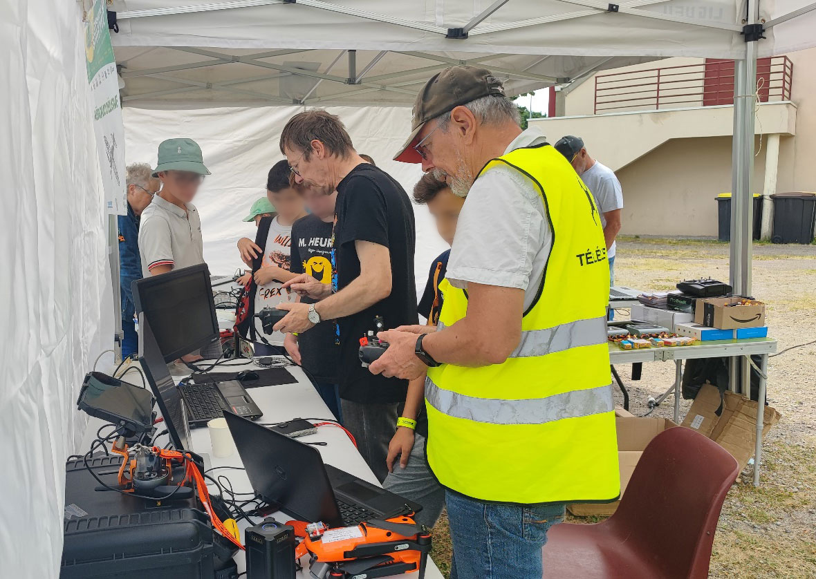 25 volontaires de 4 clubs différents, le Club d’Aéromodélisme de la Choisille, les Ailes Rabelaisiennes, l’Equipe Lochoise d’Aéromodélisme et le Club d’Aéromodélisme de Touraine, se sont mobilisés pendant 12 jours. Des journées qui commençaient tôt et finissaient tard avec un travail très prenant auprès des jeunes, des accompagnateurs et des parents ! Au programme, simulateurs et lancé de petits planeurs en EPP pour les plus jeunes. Pour les plus de 10 ans et les adultes, pilotage de drones soccer … Plus de 700 vols ont été effectués pendant ces 12 jours ! est donc autant de recharges batteries !
