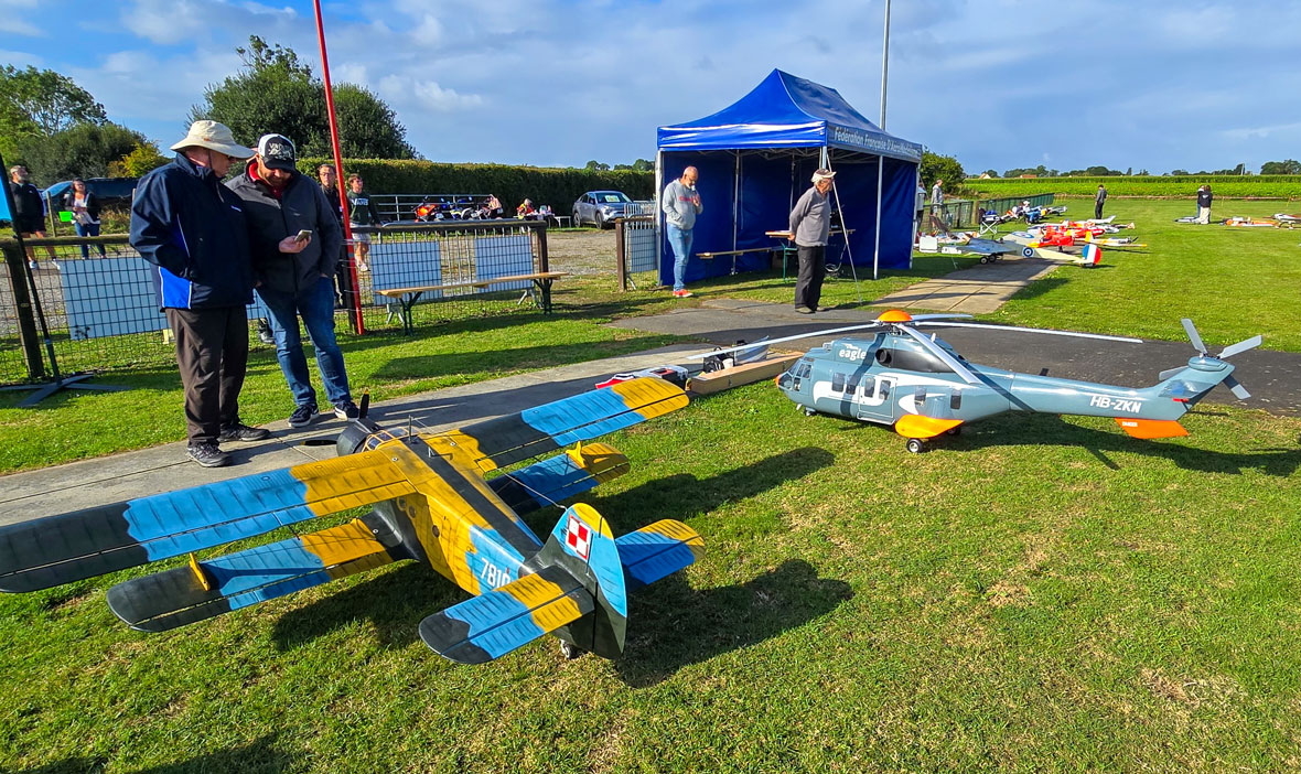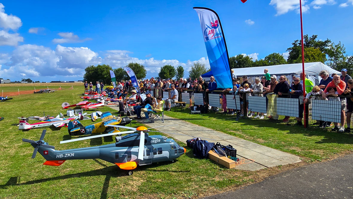 Le parc des modèles était composé d’une quarantaine d’avions (antiques, jets, warbirds, etc), hélicoptères et planeurs disposés dans la zone côté piste à proximité de la zone côté public. Les visiteurs petits et grands ont ainsi pu admirer à loisir l’ensemble des modèles et échanger avec les modélistes évoluant à proximité des barrières de séparation.