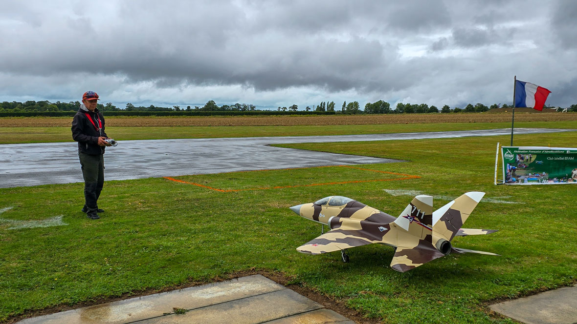 Après avoir procédé aux derrières installations matérielles sur le terrain, nous étions prêts samedi dès 14h00 pour « ouvrir le bal », mais c’était sans compter sur la pluie qui s’était invitée depuis le début de la matinée et ne s’est arrêtée qu’une heure avant l’horaire de fermeture prévu pour cette première journée. Malgré les mauvaises conditions météo du jour, une dizaine de plotes a quand même rejoint le lieu du spectacle et bien leur en a pris car les entraînements ont pu s’enchaîner jusqu’en soirée, à commencer par Erwan Plu qui, aux commandes de son Super Scorpion, a ravivé la flamme dans nos esprits et suscité l’espoir d’un lendemain meilleur.