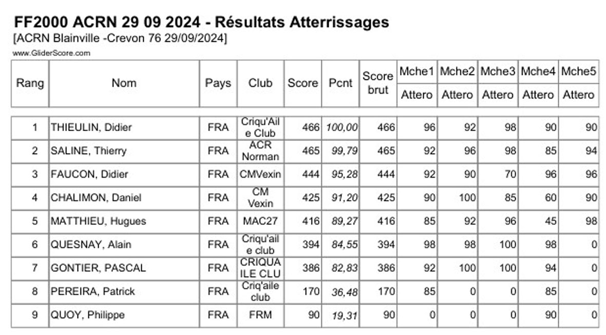 Voyage dans le temps pour ce concours FF2000 organisé par l’ACRN à Blainville Crevon(76), terrain qui a vu naître la formule. A l’époque cette nouvelle discipline attirait du monde dans un vivier de vélivole important avec une moyenne d’âge en adéquation avec les efforts à fournir… Mobiliser pour organiser une rencontre devient difficile… malgré tout, les derniers ‘dinosaures’ avaient répondu à l’appel, avec un plateau de compétiteurs relevé et la présence entre autre du champion de France 2024.