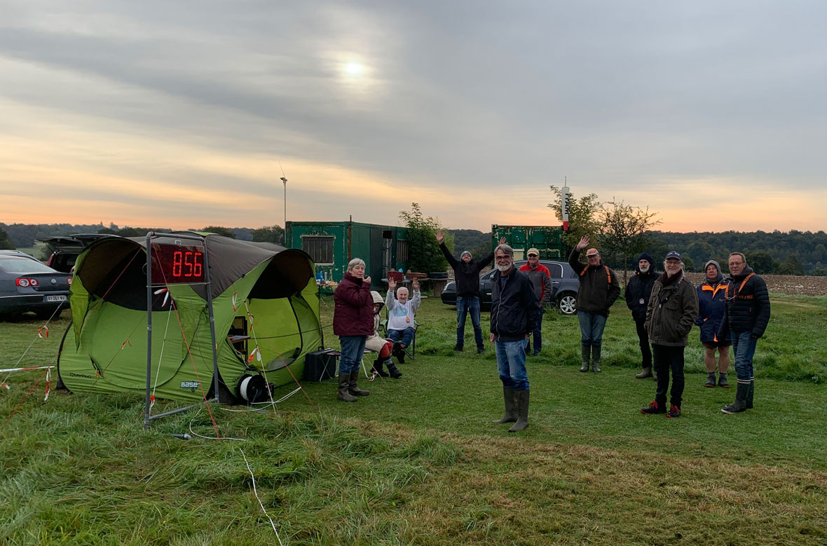 Trois lignes de sandows avaient été montées pour l’occasion avec des manches de quatre séries (3,3,2,2) afin de disposer d’un nombre suffisant de personne au sandow. Trois manches seront réalisées le matin dans un vent modéré où le ‘1000’ se jouait aux points d’atterrissage, les pilotes assurant quasiment tous les 6′ de vol. Matinée clôturée par un moment de convivialité devant un verre et un repas tiré du sac. Reprise l’après-midi vers 14h, dans un vent soutenu, permettant des largages à des altitudes importantes. Le contrat des 6 minutes sera souvent rempli avec des cibles honorables mais un pilotage fin s’imposait. Deux nouvelles manches de plus et par décision collégiale face à un vent devenu difficile la fin de la rencontre était prise.