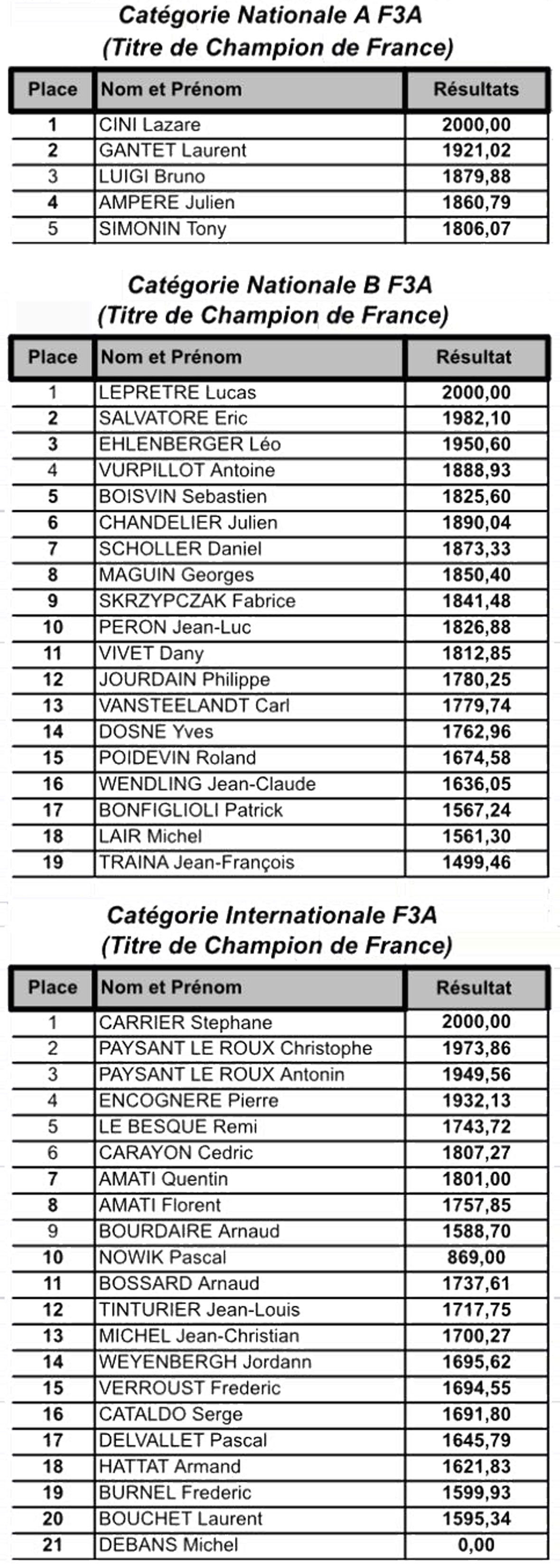 45 pilotes étaient inscrits et 44 ont participé à ce Championnat de France F3A 2025 :