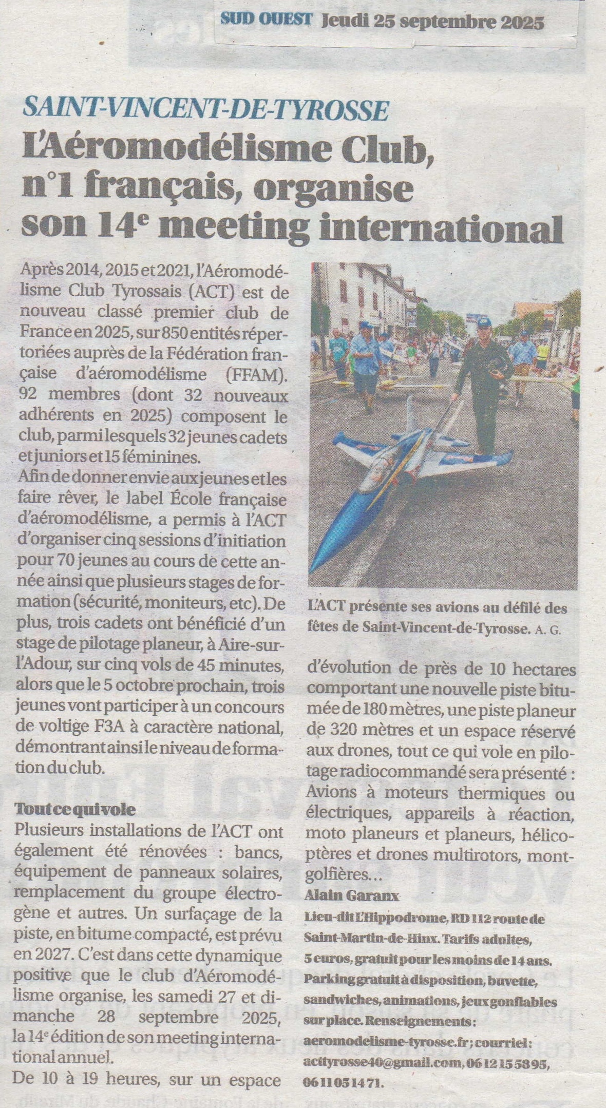 L’Aéromodélisme Club Tyrossais, n°1 français, organise son 14ème meeting international