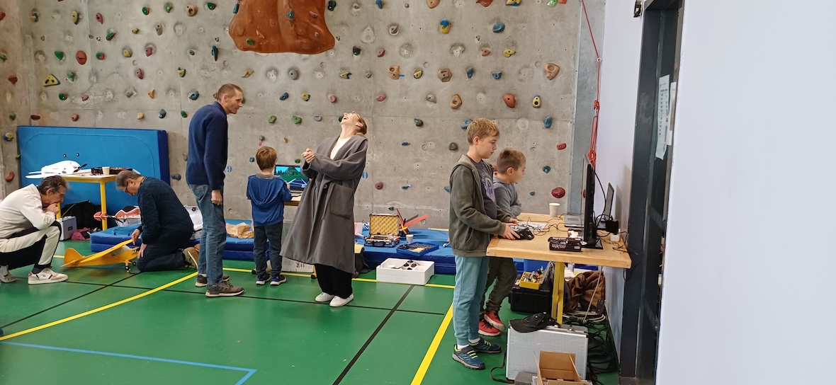 Ce dimanche donc, certains ont ressorti de vieux modèles de « p’tits » avions et hélicoptères tandis que d’autres ont assemblé des avions neufs. La Fédération Française d’Aéromodélisme (FFAM – 20.000 membres) nous a subventionné pour l’achat d’un avion-école indoor car nous avons le label École de Formation en Aéromodélisme (EFAM).