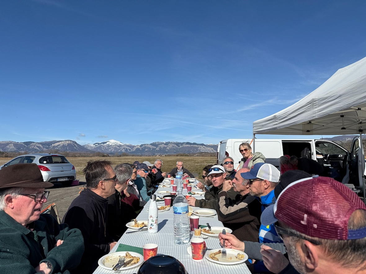 Le samedi soir, tout le monde s’est retrouvé au même restaurant pour une soirée très sympathique. Trois pilotes italiens de vol libre étaient également présents parmi les 32 personnes à table !