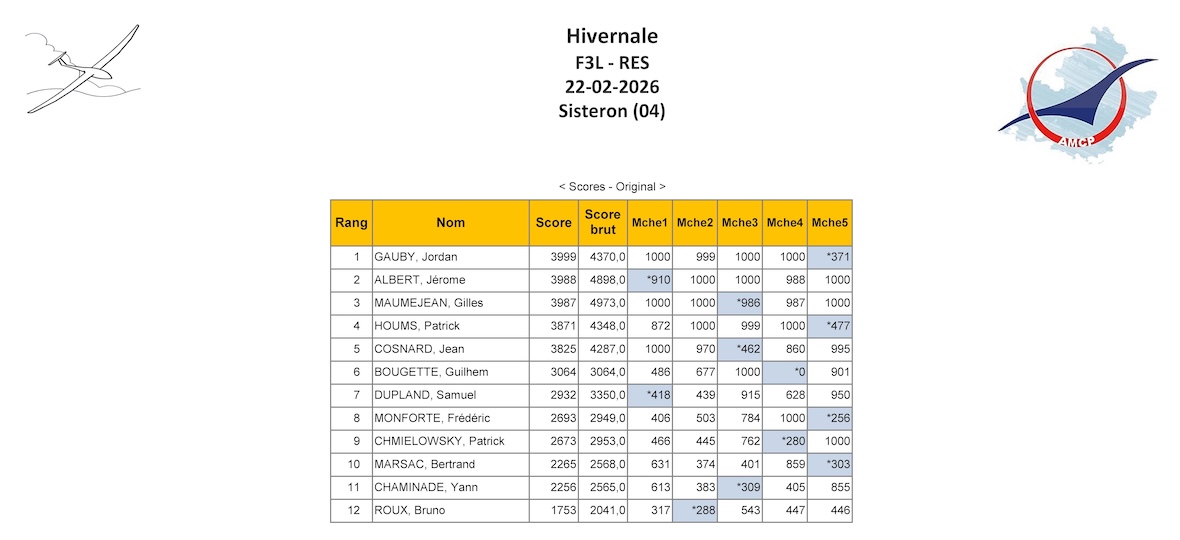 Il est à noter que nous avons doublé l’effectif de ce concours par rapport au précédent puisque 12 pilotes étaient présents contre 6 à l’automnale de novembre 2025.