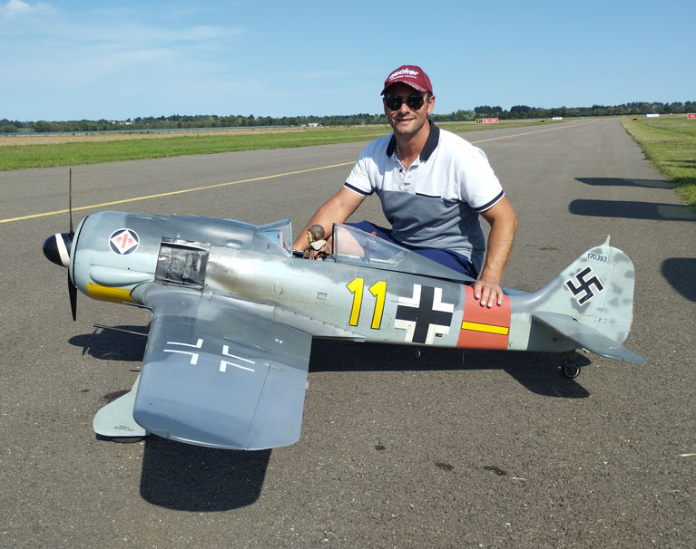 En 2014, le Championnat du monde se déroulait à Marmande en France. Après un entrainement intensif et plus de 6 mois passés dans l’atelier pour apporter tout un tas de modifications à mon FOCKE-WULF190A8, j’ai obtenu la 6e place en individuel et j’ai été sacré Champion du monde par équipe.