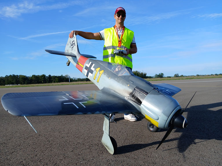 En 2014, le Championnat du monde se déroulait à Marmande en France. Après un entrainement intensif et plus de 6 mois passés dans l’atelier pour apporter tout un tas de modifications à mon FOCKE-WULF190A8, j’ai obtenu la 6e place en individuel et j’ai été sacré Champion du monde par équipe.